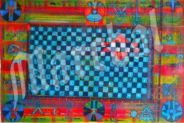 Título: Estructura de Dominación MundialArtista: Justo Alfonso Aguilar Tapia (1952–2014)Técnica: Óleo, tinta y pigmento sobre lienzoDimensiones: 90 cm × 58…